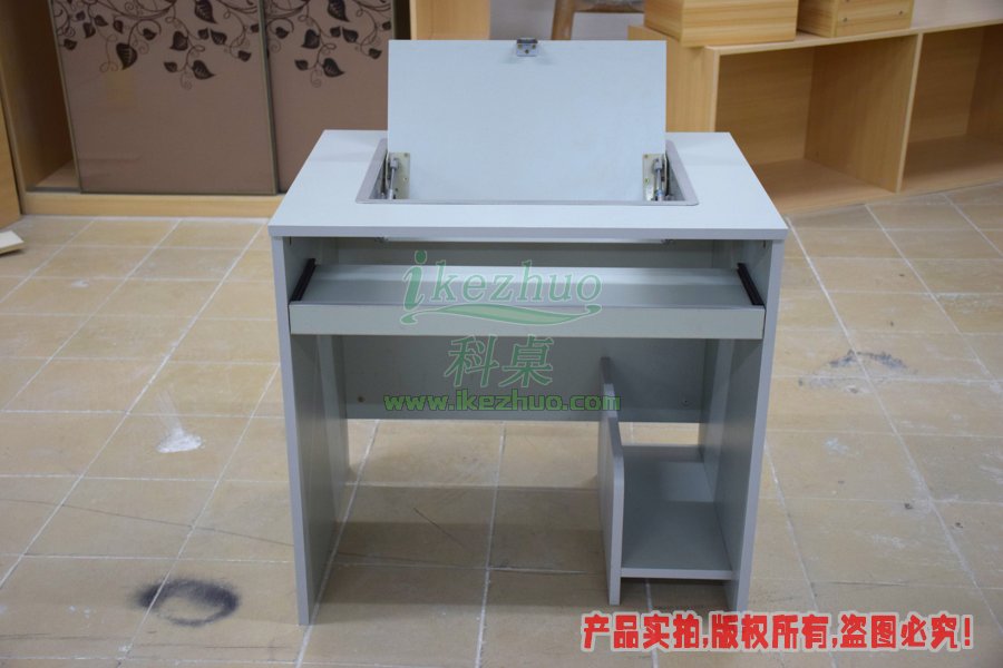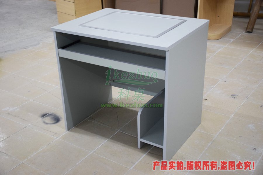 單人位帶邊框翻轉電腦桌K087產品名稱單人位帶邊框翻轉電腦桌產品型號K087產品尺寸800600760mm產品材質密度板、夾板產品顏色淺灰色-麻面(有其他顏色可選)板材厚度18mm(面板可加厚)開孔尺寸480x380mm(19寸)可裝顯示器19寸液晶屏顯示器科桌翻轉電腦桌主要應用于各種大型會